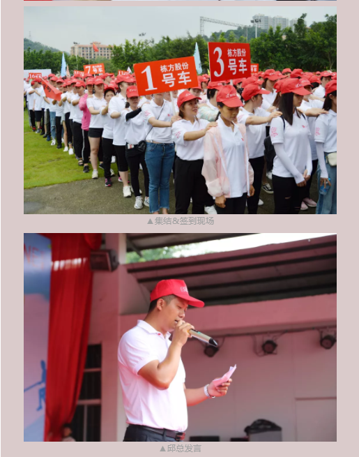 抵達目的地后,看到的是佇立在綠油油草地上的簽到墻,還有等候多時的基地教導(dǎo)員;在教導(dǎo)員的帶領(lǐng)下整齊列隊簽到,進入訓(xùn)練場地,邱總上臺發(fā)言。
